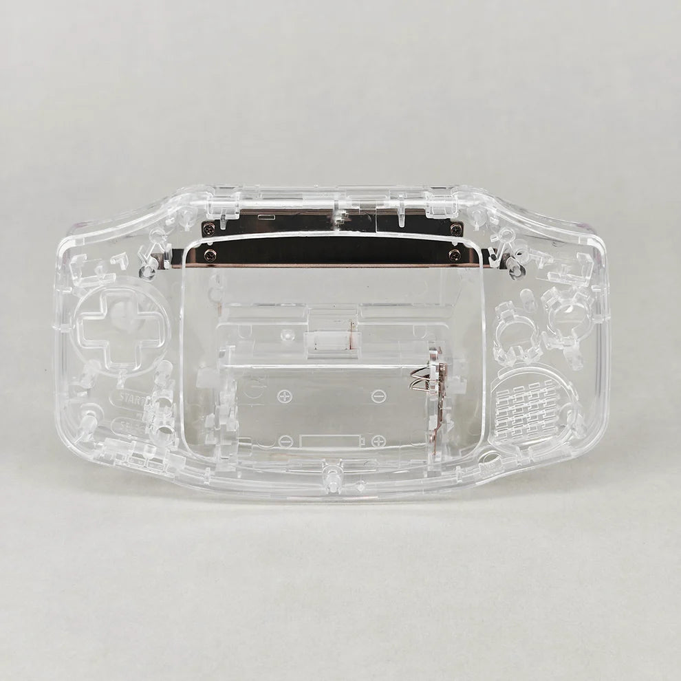 A refurbished original Nintendo GBA motherboard (cleaned, tested, and restored) with custom shell, buttons, membranes, and screen lens.